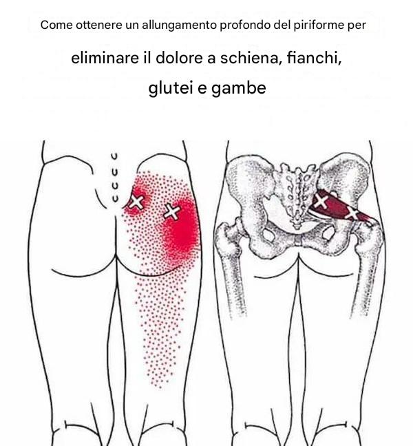 Il muscolo piriforme è un piccolo muscolo sottile situato dietro il grande gluteo. Collega la colonna vertebrale alla parte superiore del femore e consente al fianco, alla coscia e al piede di muoversi verso l’esterno del corpo. È fondamentale per l’equilibrio generale del nostro corpo.
