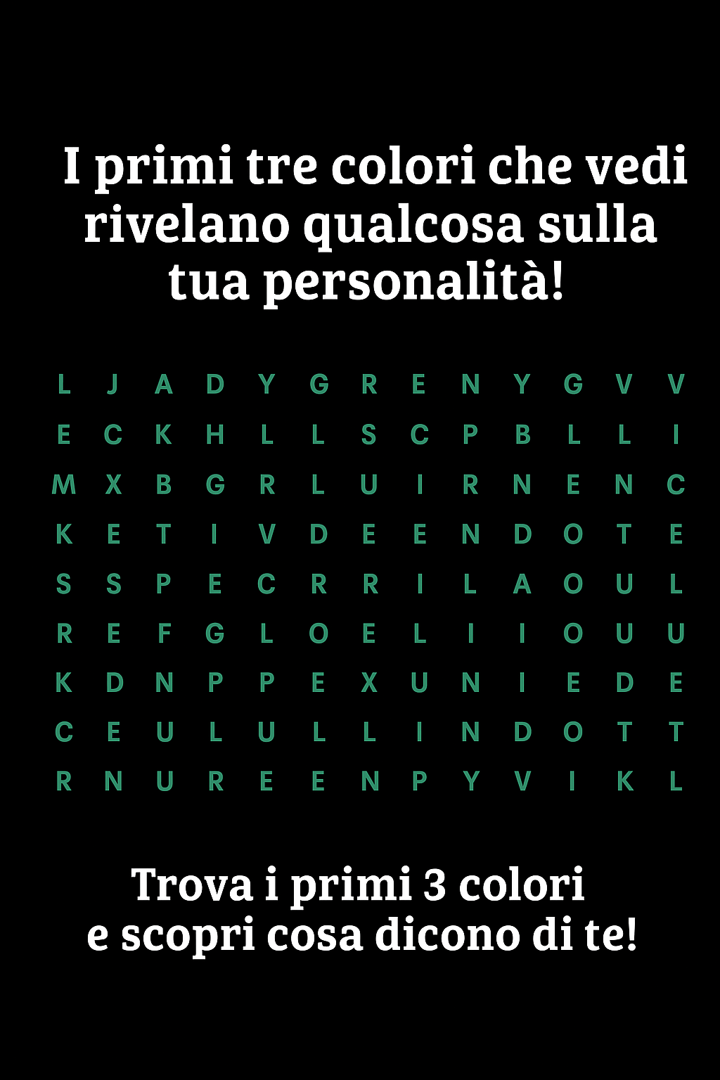 Osserva attentamente l'immagine qui sotto. Si dice che i primi tre colori che vedi mostrino come intimidisci naturalmente gli altri, che sia attraverso la sicurezza, l'intelligenza, la creatività o la pura presenza.
